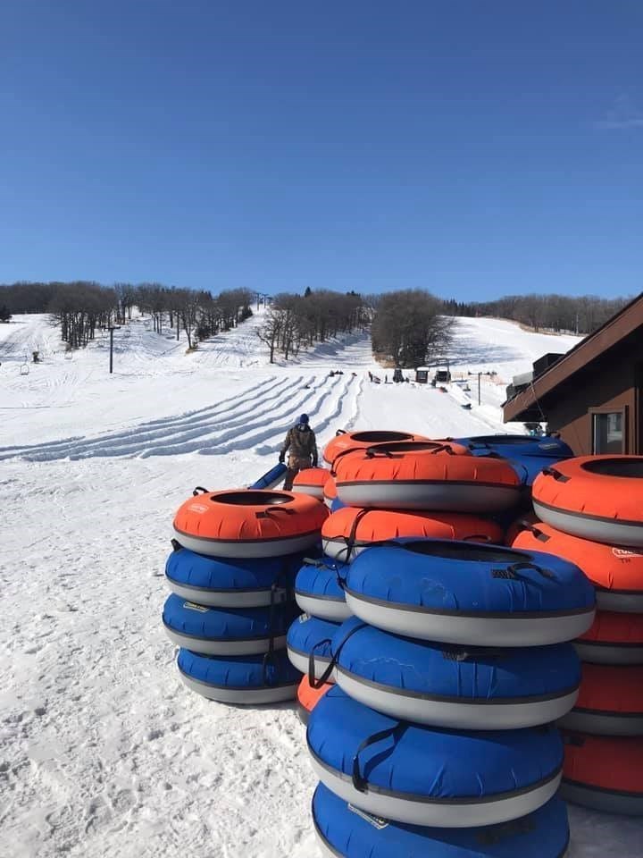 We are a small tubing, skiing and snowboarding area owned and run by 2 families. The tubing hill is located on the north side of the old ‘bunny hill’ with a rope tow to get to the top. We have concessions available for purchase and a liquor license on premise.