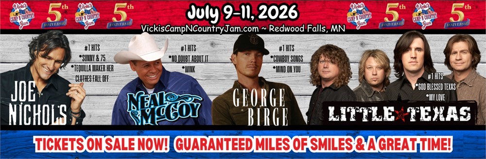 Vicki's Camp N Country Jam is an amazing and unique 3-day festival that hosts national and regional country music artists annually in a beautiful country setting "in the corn field." This year's national artists lineup includes George Birge, Neal McCoy, Little Texas, Joe Nichols and regional artists: IV Play, Chris Hawkey, HickTown Mafia, Buffalo Alice, Kentucky Thunder, and Tanner Stark. Come for the great live music, camping, food and beverages. With fewer crowds and short walks to everything, activities, and prizes! Must be 18.