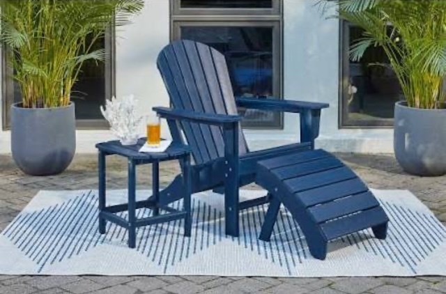 2 Ashley Sundown Treasure Adirondack Chairs, End Table, and Ottoman Set